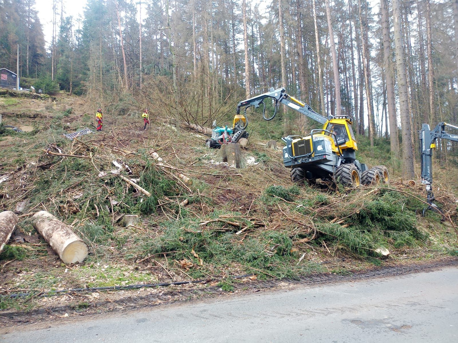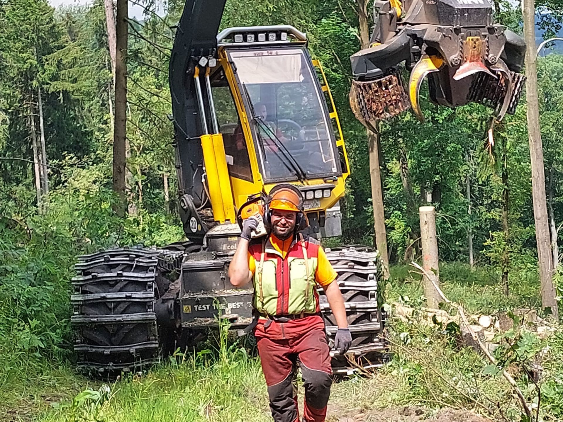 Im Bereich des maschinellen Holzeinschlags arbeiten wir mit modernster Technik mithilfe unser erstklassigen Ausrüstung.